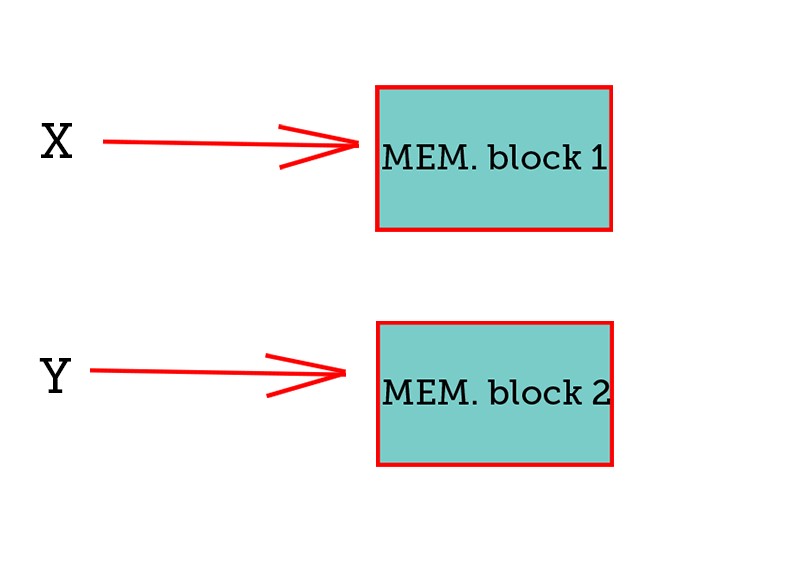 In this example, x and y is referencing memory blocks 1 and 2 so they are live memory and
